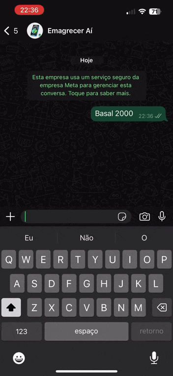 📸 Basta mandar uma foto da sua comida. O aplicativo analisa e mostra na hora quantas calorias você está consumindo — direto no WhatsApp, sem precisar anotar nada.
